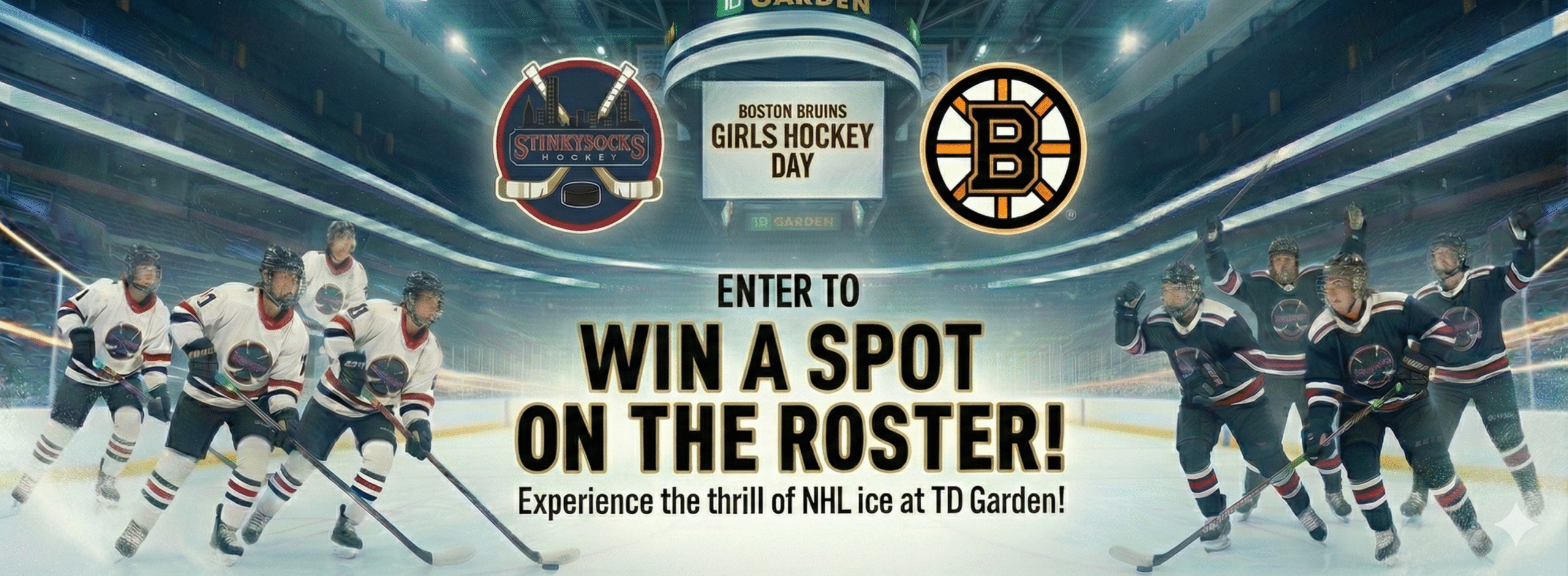 Experience the thrill of NHL ice! StinkySocks Hockey has partnered with the Boston Bruins to give players in our women’s community the opportunity to participate in the annual Boston Bruins Girls (& women’s) Hockey Day at TD Garden. The event will include a skills and scrimmage session for women at the beginner/novice-level. Due to a limited amount of spots for this event, we are offering a drawing to be selected to participate. There is no cost to enter or participate. We invite players at the women’s novice and lower levels to enter. Please see below for complete details and eligibility.